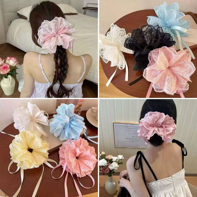 Korean Style Sweet Large Scrunchie Thick Fabric Handmade Flower Hair Tie Pullable Bun Small Niche Hair Tie