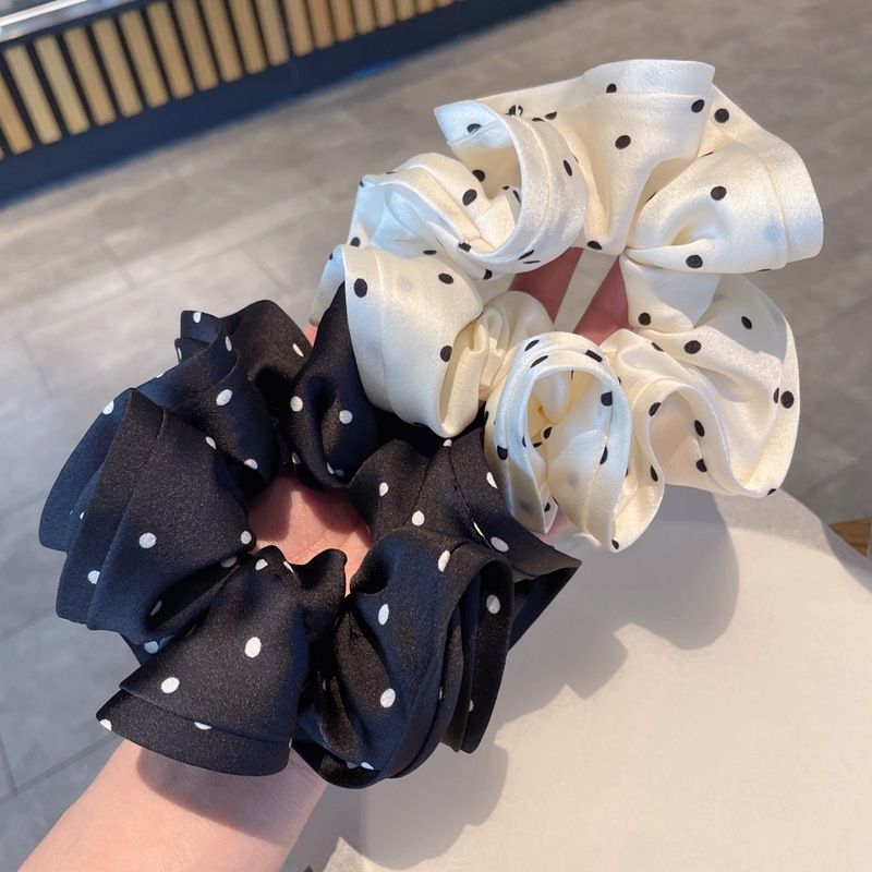 Fascia per capelli in raso a pois con intestino crasso per donna con un tocco di alta qualità, temperamento semplice, accessorio per capelli con coda di cavallo alta