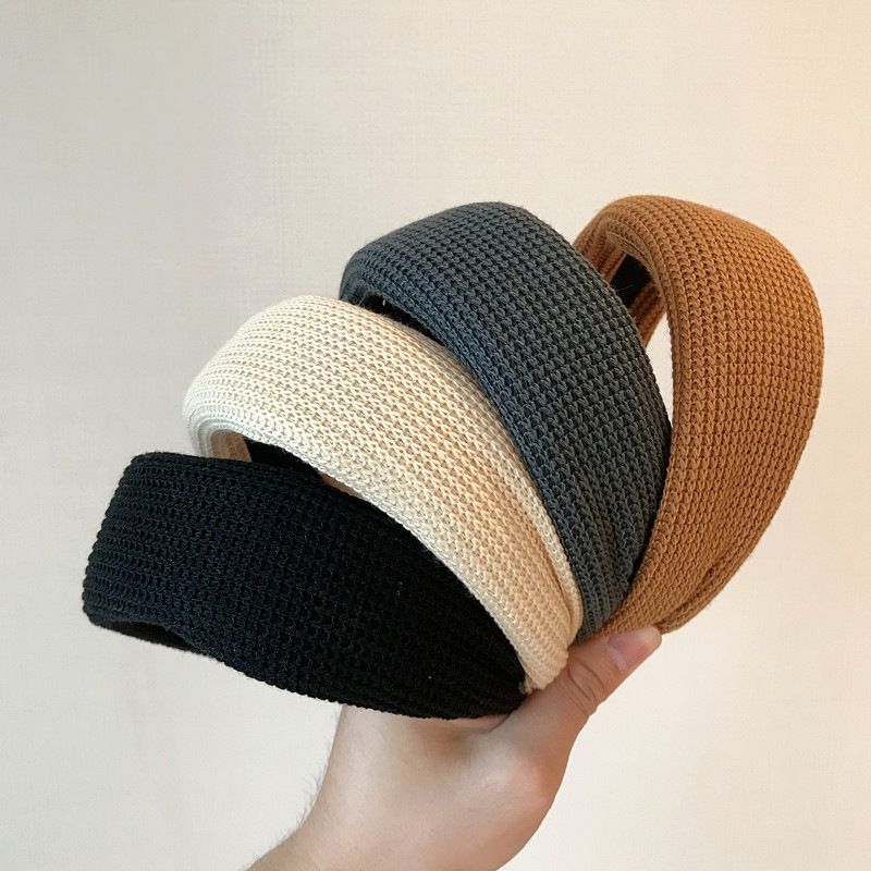 Fascia per capelli in stile coreano, lavorata a maglia, ampia, versatile, elegante, semplice, tinta unita, per donne, fermaglio per capelli di celebrità di Internet