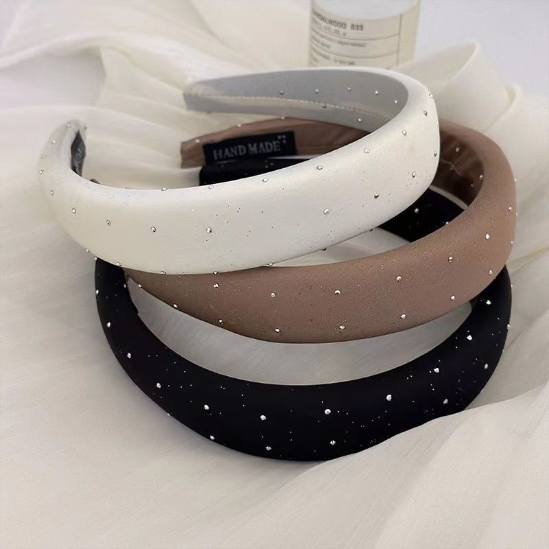 High-end Black Rhinestone Headband for Women, High Skull Top Hairband, Fashionable Face-slimming Internet Celebrity Headband, Hair Accessory