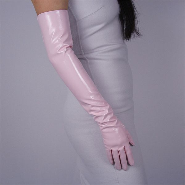 Fashion Lady Patent Leather Long Gloves Extra Long Elbow PU Simulation Leather Bright Leather Mirror Light Pink 60cm T09
