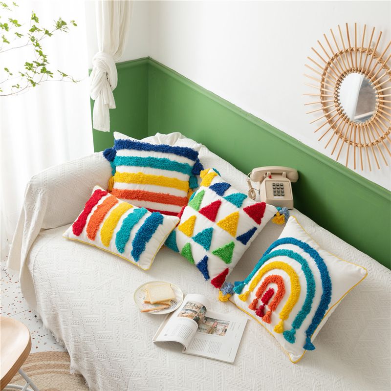 Federa per cuscino in tela di cotone stile marocchino con motivo a strisce geometriche arcobaleno, modello per camera da letto, copridivano per casa