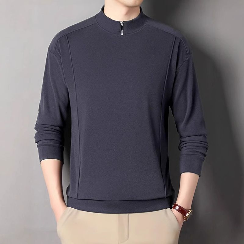 Thick double-sided velvet long sleeved sweatshirt for men in autumn and winter, with a semi high collar and zipper, simple and casual bottom shirt, T-shirt for men