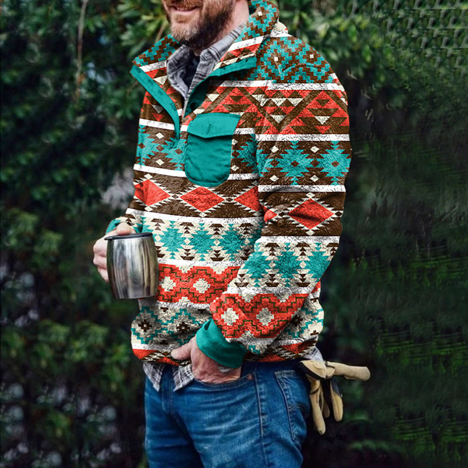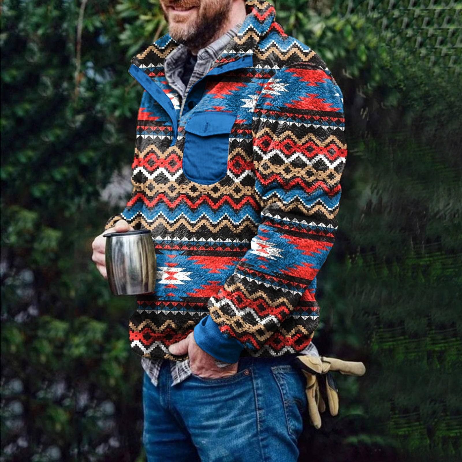 2021 Autumn/Winter New Men's Checkered Double sided Plush Cardigan Sweater Fashion Plush jacket