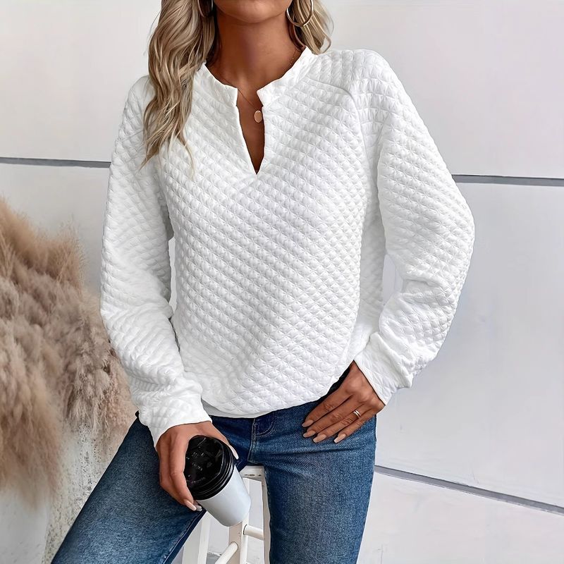 Felpa casual da donna con scollo a V profondo e maniche lunghe, tinta unita, K New