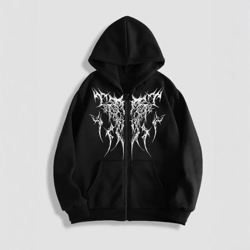 Felpa con cappuccio casual con stampa digitale punk Y2K, felpa sportiva con cappuccio per coppia in stile gotico americano