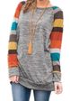 2024 Spring and Autumn plus size women's striped shoulder long sleeved color blocked hoodie round neck loose T-shirt