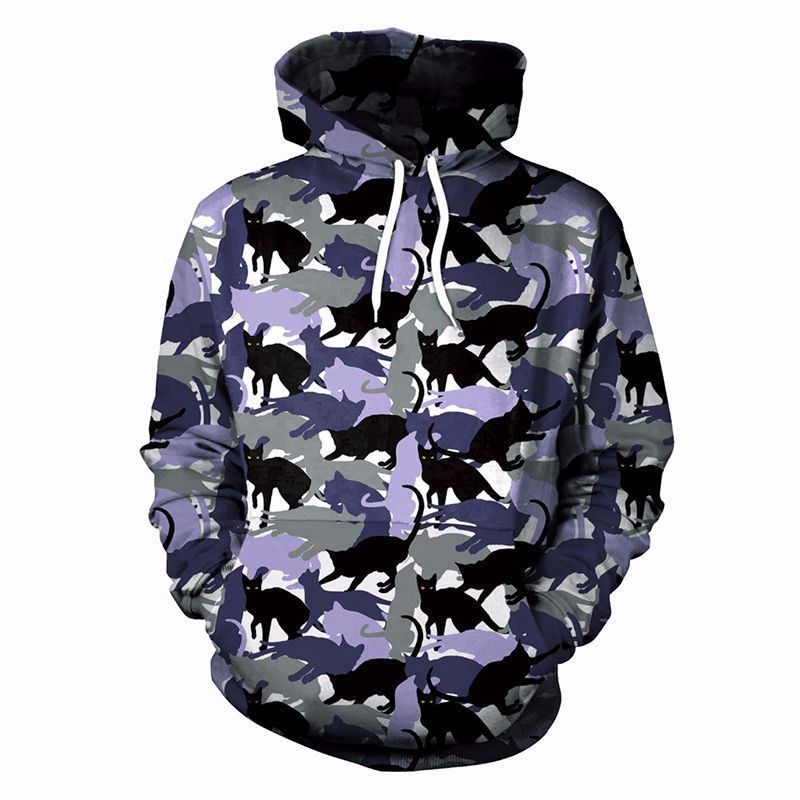 3D Digital Cat Print Casual Loose Men's Hoodie Sweatshirt
