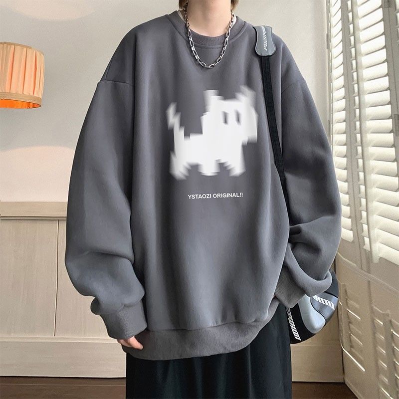 Felpa con cappuccio con stampa di gatti in stile americano, senza cappuccio, da uomo, autunno inverno, manica lunga, trendy, versatile, casual