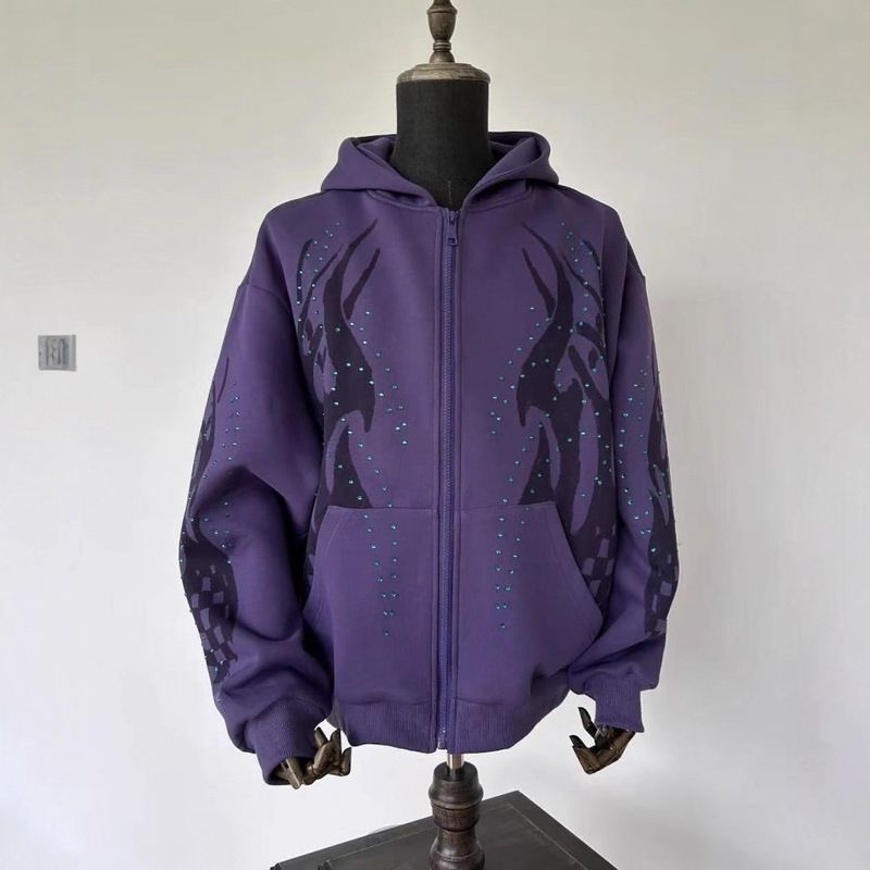 Trendy Digital Print Hoodie Sweatshirt Autumn Winter Hip Hop Gothic Street Loose Zipper Jacket