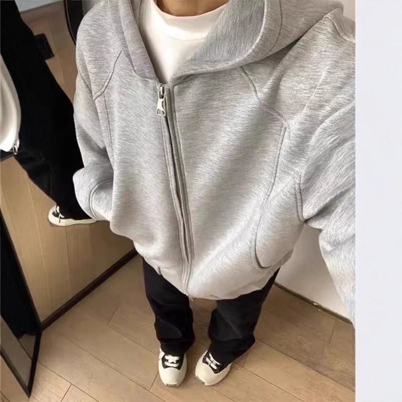 Felpa con cappuccio e doppia cerniera stile americano Cleanfit da uomo, modello cardigan, primavera/autunno, alla moda