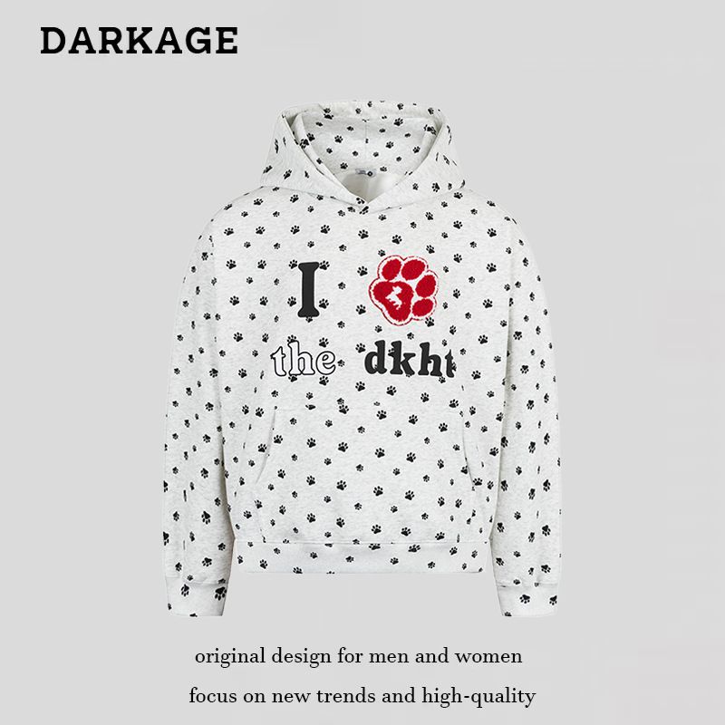 2025 Spring New American Style Heart Dog Footprint Slim Fit Hooded Long Sleeve Sweatshirt for Women Spring Long Style