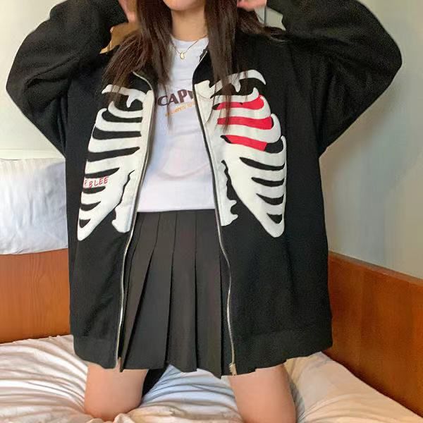 2023 New Skull Hoodie Hip Hop Sweatshirt for Women Loose Street Style Zipper Cardigan Y2K Jacket