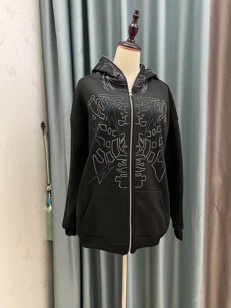 Zipper Sweatshirt 2023 Autumn Winter New Rhinestone Sweatshirt Long Sleeve Loose Casual Gothic Hoodie