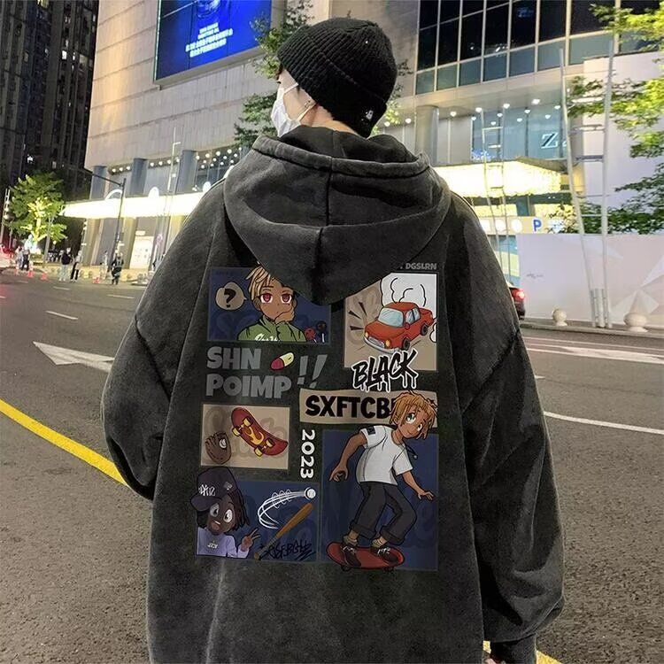 Felpa con cappuccio in composito con doppia tasca lavata americana per uomo e donna, pullover hip-hop, autunno e inverno spesso e largo