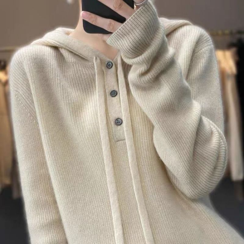 Felpa con cappuccio in lana spessa autunno inverno 2025, maglione lavorato a maglia da donna, maglione di base largo e versatile, top_voghion.com