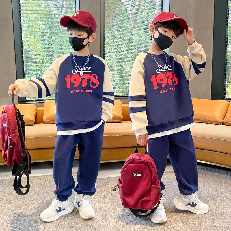 Children's clothing and boys' hoodie set 2024 new style, suitable for middle-aged and large children, boys, spring and autumn children, fashionable splicing sports two-piece set