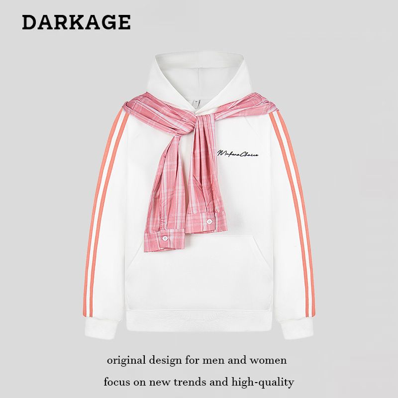 American Style Letter Embroidery Detachable Plaid Shawl Hooded Sweatshirt 2025 Unisex Autumn Loose Couple Ins Style