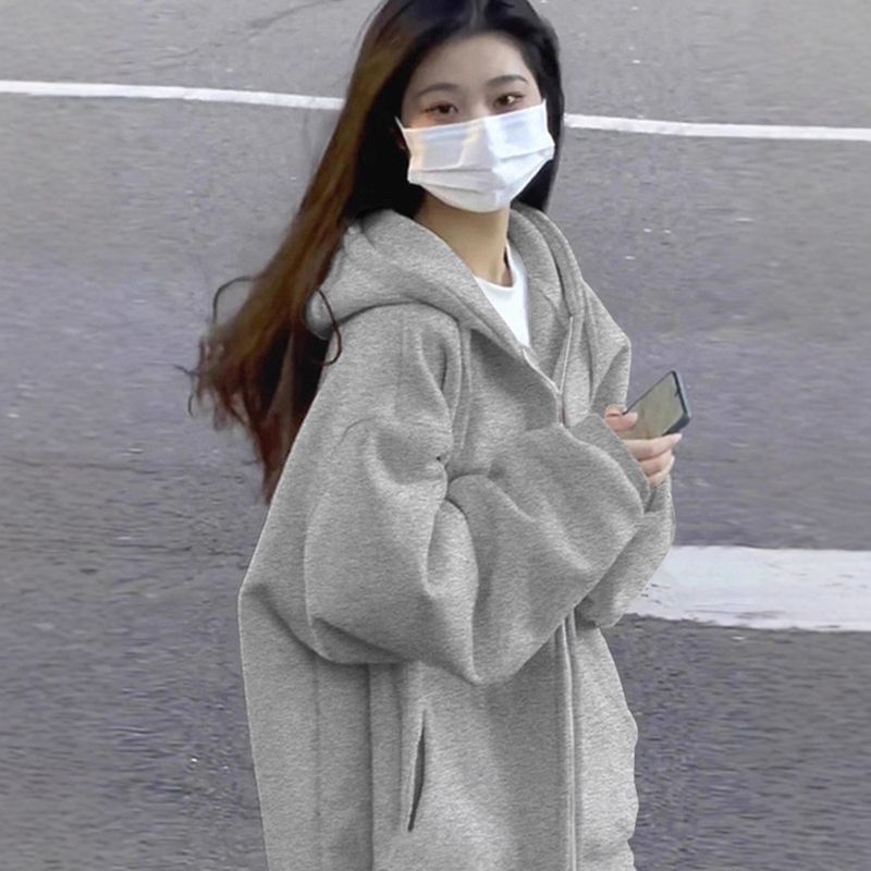 Ins Super Popular Hoodie for Women, Autumn and Winter Oversize Thin Jacket, Korean Style Trendy Loose Lazy Cardigan Top