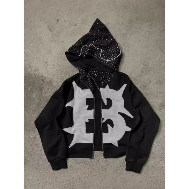American Y2K Style High Street Print Autumn New Letter Patch Unisex Hoodie