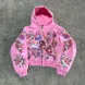Felpa con cappuccio Y2k Retro Black Risen King Cropped Zip Up di alta qualità con cappuccio lavato con grafica gotica per uomo e donna