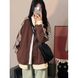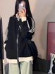 Color Block Patchwork Stand Collar Sweatshirt Jacket for Women Spring Autumn Versatile Loose Mid-Length Zipper Baseball Jacket Sports Top