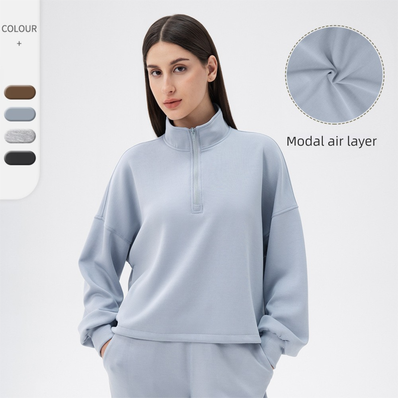 Women's Autumn Winter Yoga Wear Sports Sweatshirt Modal Loose Casual Stand Collar Running Fitness Sports Top 42553