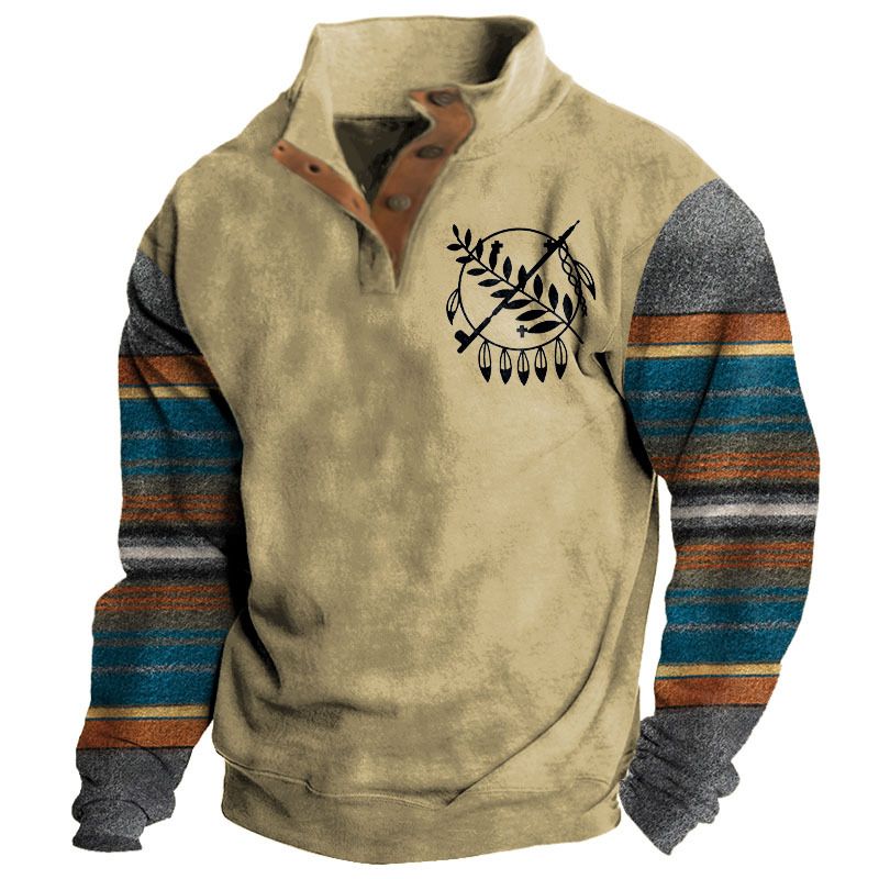 Autumn Men's Sweatshirt Henley Shirt Digital 3D Print Series Four-Button Henley Collar