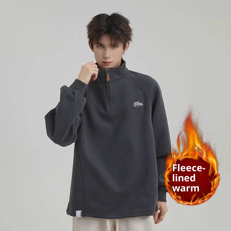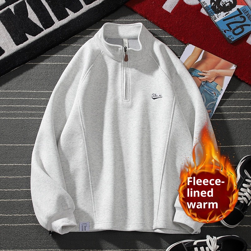 Product Source Category:In Stock,Brand:other,Item Number:Yuanbao Y43,Year/Season of Release:Autumn 2025,Is it a set or not?:No,Style:Hong Kong Style,Bargain Category:Youth Fashion 18-24 Years Old,Design 1:Pullover,With or without liner:No liner,Collar Style:Stand Collar,Sleeve Length:Long Sleeve,Is it hooded or not?:Without a hood,Front placket:Zipper,Thickness:Fleece-lined,Error margin:No error,Suitable for the season:Winter,Is it in stock?:yes,Inventory Type:Complete order,Main fabric composition:Polyester Fiber Dacron,Content of the main fabric components:51% included - 70% included,Fabric Name:Chinese Cotton,Applicable Scenarios:Everyday,Pattern:Solid Color,Design details:Topstitching,Design:Loose Fit,Craftsmanship:Non-iron treatment,Clothing Pocket Styles:Pocket-Saving,Color:Dark Gray, White Gray, Dark Gray with Fleece, White Gray with Fleece,Size:M,L,XL,2XL,3XL,Suitable for everyone:Teenagers,Main downstream platforms:, , , , Independent Station, , Others,Main sales regions:Africa, Europe, South America, Southeast Asia, North America, Northeast Asia, Middle East, Others,We have authorized private labels available:yes,Is it exclusively for cross-border export supply?:yes,Sleeve Style:Regular,Original Design Source:yes,Is there a quality inspection report?:No,Quality Inspection Report Number:08,Gram weight:250g included - 300g not included,Suitable age group:adult,Applicable Gender:Male,Receive the Label:No Collar Label,Product Category:Fleece Sweatshirt,What is the source type?:Other brands,Hang Tag:No tags