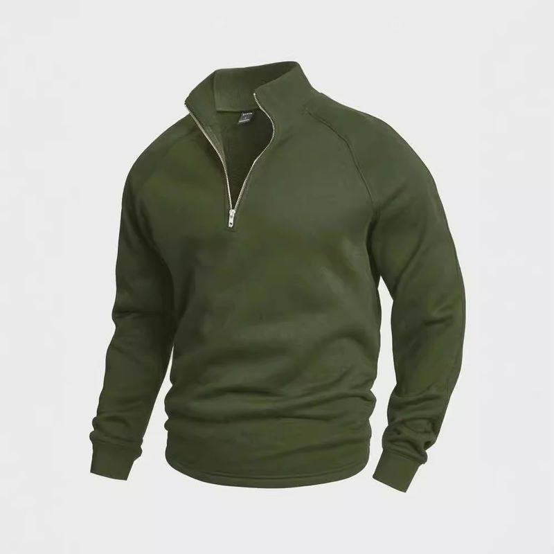 Men's Zipper Stand Collar Fleece Sweatshirt Autumn Winter Warm Loose Solid Color Outdoor Casual Jacket