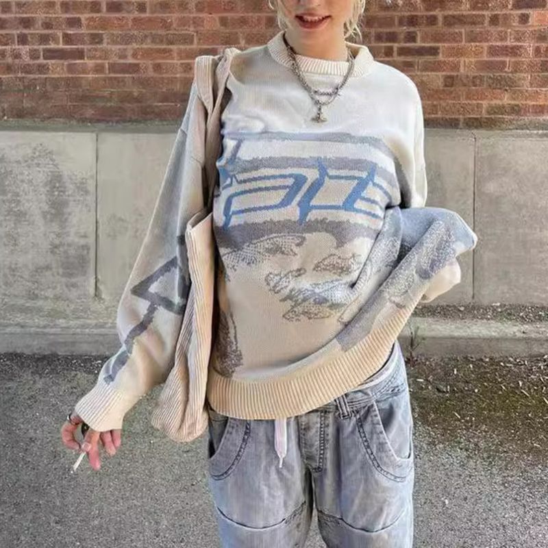 Autumn and Winter New Street Sweater Printed Sweater 2022 Personalized Casual Round Neck Sweater for Women
