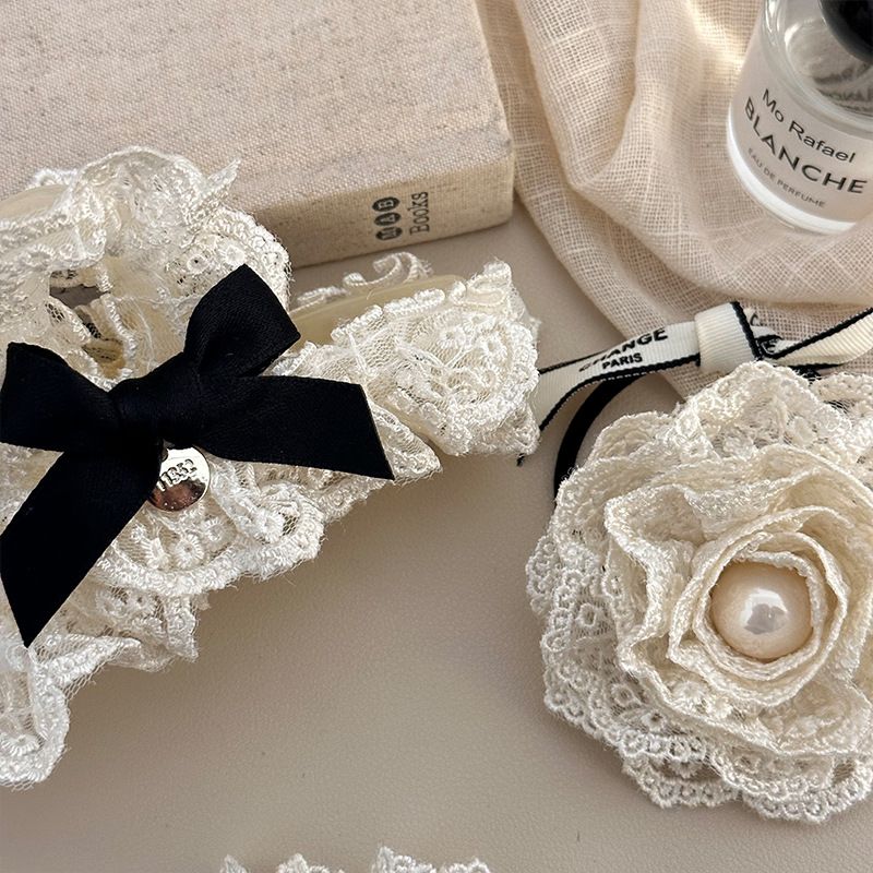 Gentle white lace lace hair clip, women's French side clip, 2024 new high-end hair clip, headwear, hair accessories
