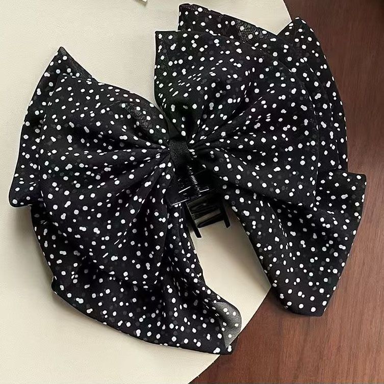 Korean Style Polka Dot Bow Hair Claw High-end French Half-tied Ponytail Shell Clip Hairpin Hair Clip Women's Hair Accessories