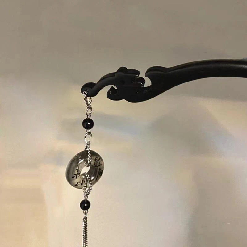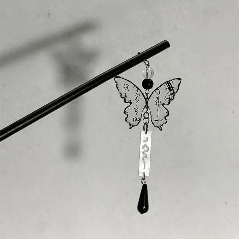 Fermagli per capelli in stile cinese elegante con calligrafia a farfalla e nappa, forcina per capelli, bacchetta, bastoncino, ornamento, copricapo, accessorio