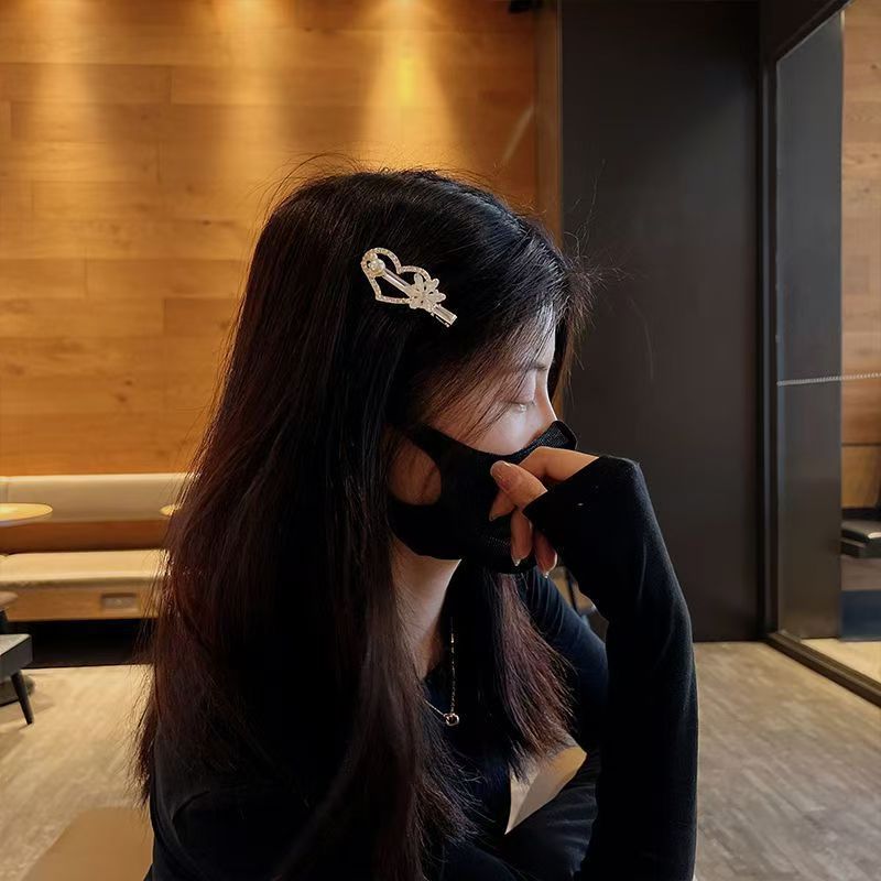 Fermagli per capelli versatili semplici con fiocco a forma di cuore a forma di becco d'anatra con strass di perle, fasce per capelli con fermagli laterali
