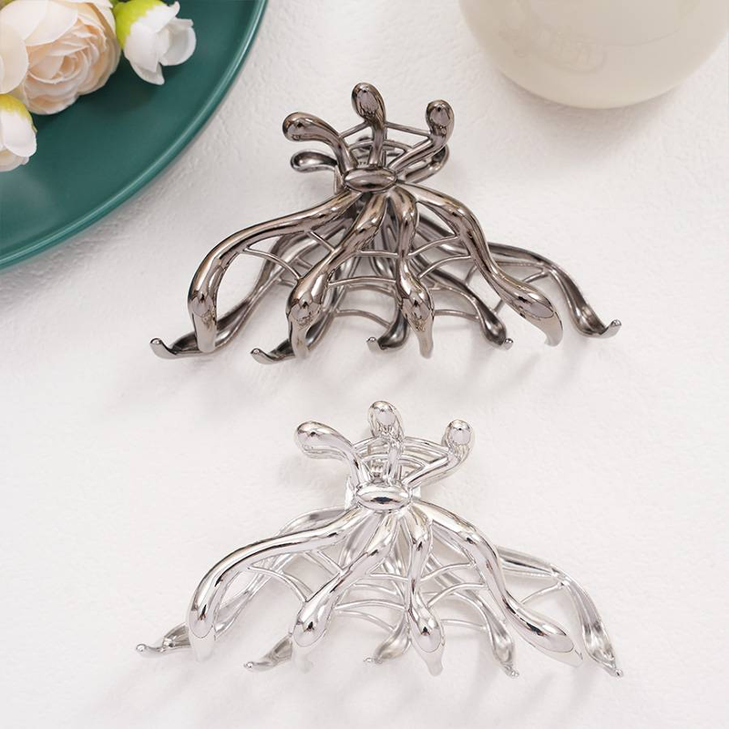 Fermaglio per capelli a forma di ragnatela, fermaglio per capelli in metallo liquido