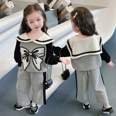 Girls' Doll Neck Bow Set 2023 New Fashionable Children's Clothing Fashionable Two Piece Set for Girls Autumn and Winter