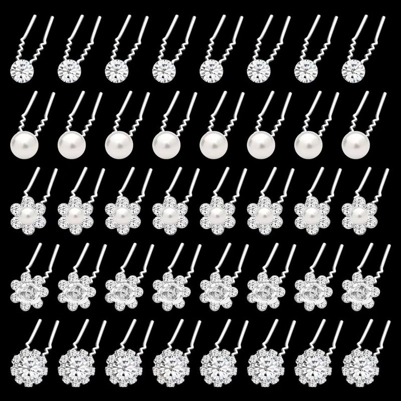 Forcina per capelli con perline, accessorio per acconciatura da sposa con strass, forcina a forma di U con fiore, per donna