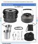 List: Pot*1, Pot Lid*1, Teapot*1, Teapot Lid*1, Frying Pan*1, Cups*2, D Quick Hook*1, Three-Piece Tableware Set*1, Net