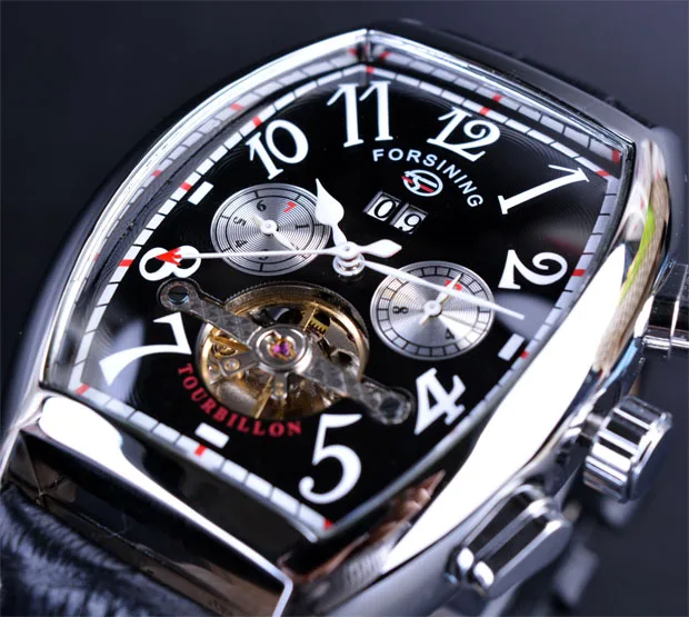 Brand Name : FORSININGModel Number : GMT876-1Feature : Complete CalendarOrigin : Mainland ChinaStyle : Fashion & CasualMovement : Mechanical Hand Wind,Automatic Self-WindDisplay Type : NumberlessFeature : Screw crownCase Material : Stainless SteelBoxes & Cases Material : LeatherDial Window Material Type : GlassCase Shape : RectangleBand Material Type : LeatherBand Length : 25.0cmClasp Type : BuckleWater Resistance Depth : No WaterproofItem Type : Mechanical WristwatchesDisplay Type : NeedleCase Thickness : 14mmBand type : LeatherHign-concerned Chemical : NoneMovement origin : CN (Origin)Gender : Men