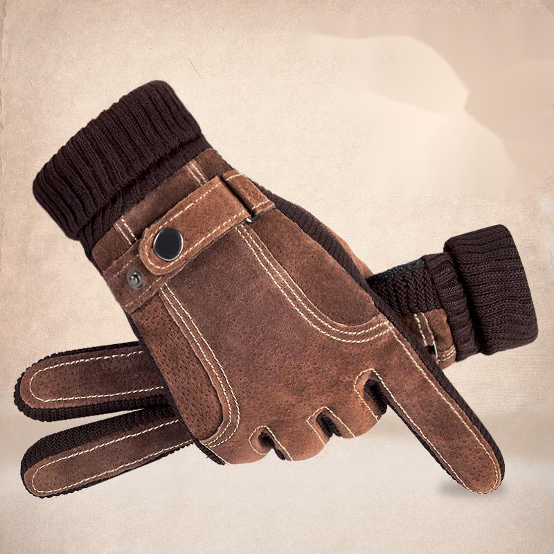 Guanti in vera pelle da uomo in autunno inverno, morbidi e ispessiti per il calore, per la guida all'aperto, per moto elettriche,