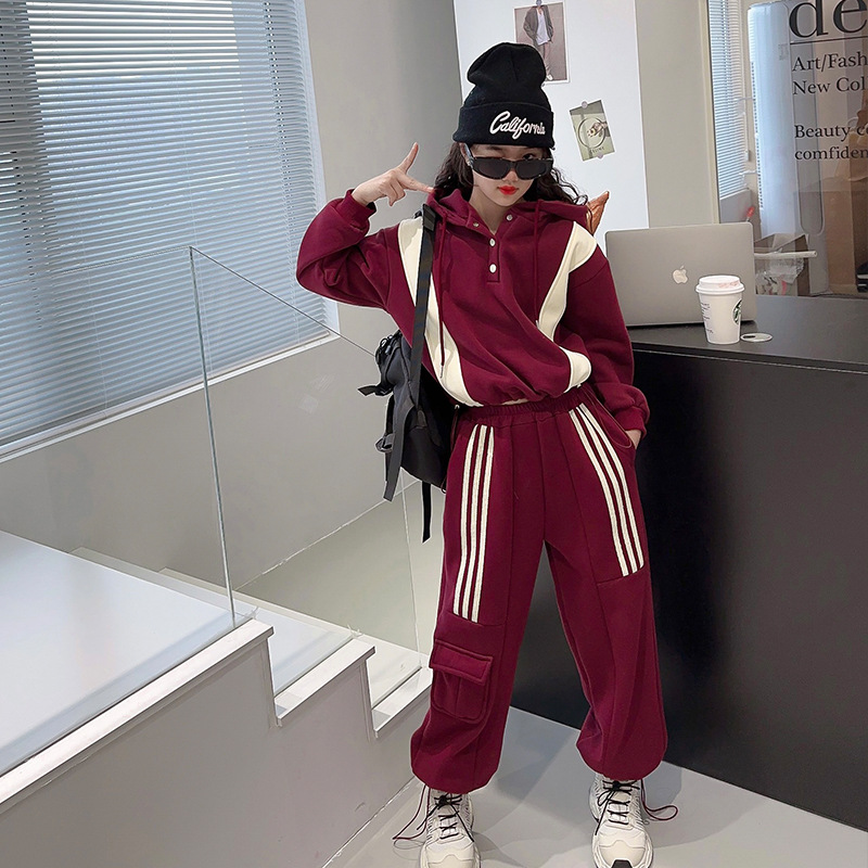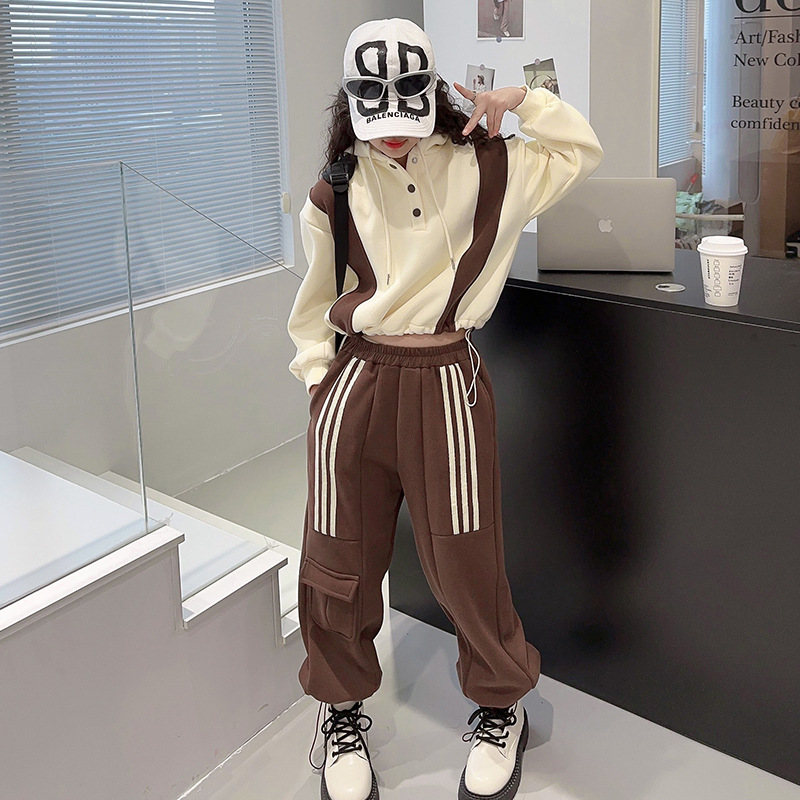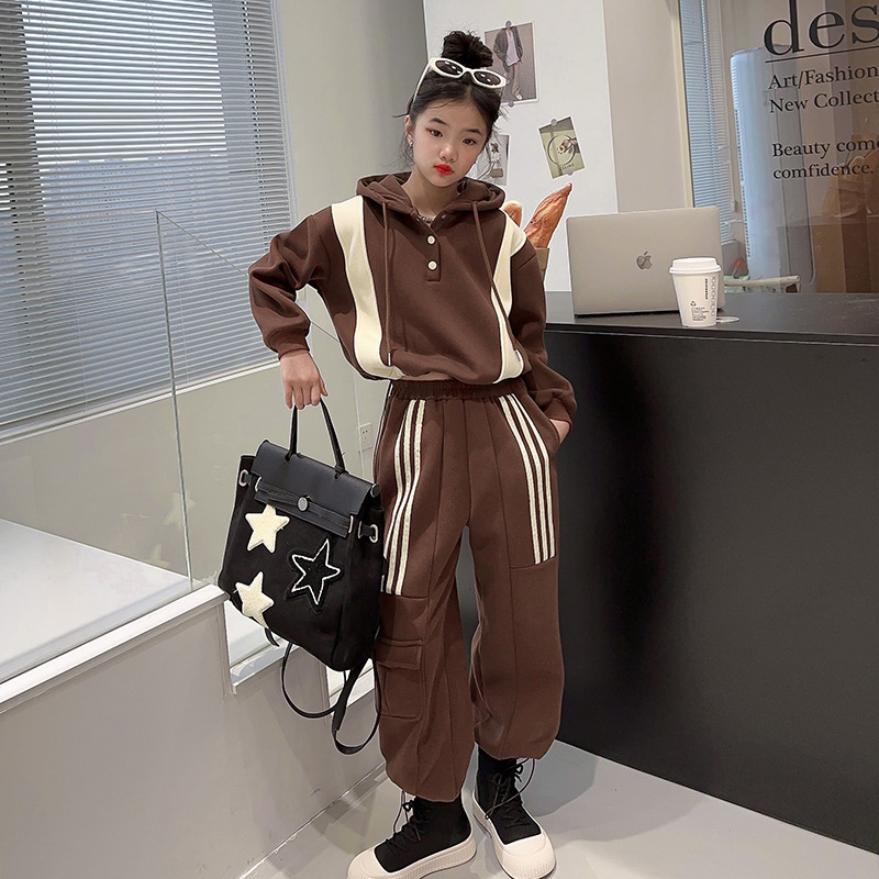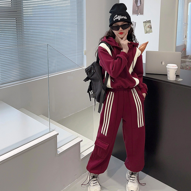 Girls' Sweater Set Autumn 2023 New Children's Leisure Sports Spring and Autumn Big Boy Winter Plush Two Piece Set for Girls