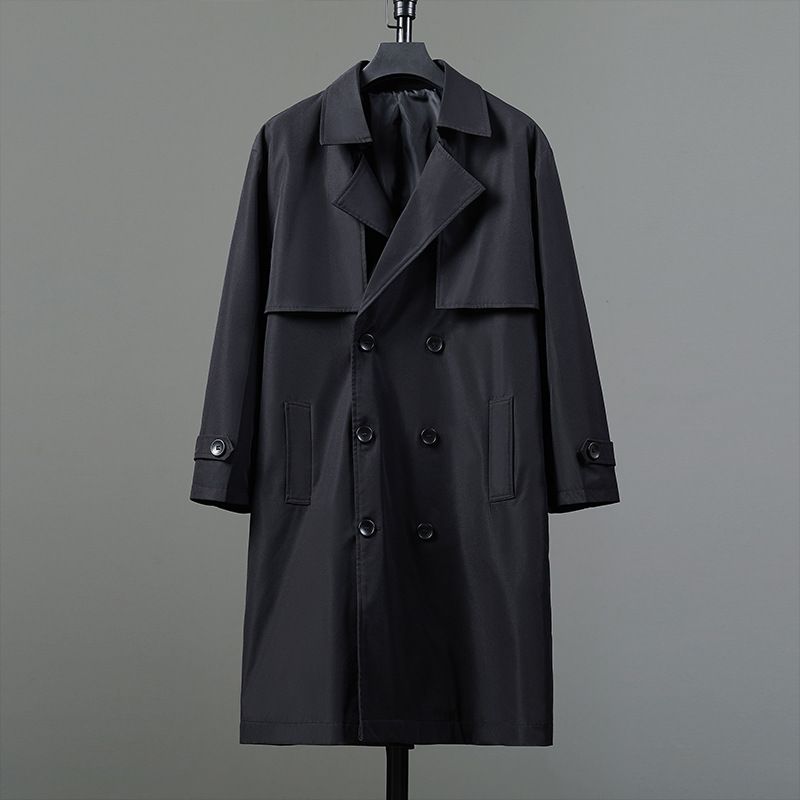 Spring and Autumn Men's Mid length Windbreaker Men's Korean Youth Double breasted British Fashion Loose Trendy Coat Coat