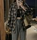 American plaid shirt jacket for women, 2024 spring/summer long sleeved casual design, black and white plaid shirt for women