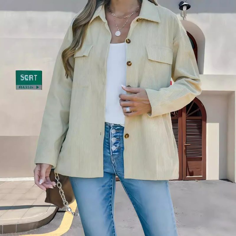 Giacca casual a coste con colletto rovesciato, tinta unita, autunno inverno 2025