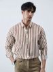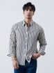Giacca casual giapponese a righe testurizzate, risvolto color block, camicia da uomo alla moda in stile coreano da un pollice, camicia interna ed esterna