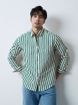 Japanese striped shirt, men's textured casual jacket, lapel color blocked trendy men's Korean style inch shirt, inner and outer shirt