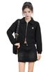 Giacca corta con cappuccio e cerniera con colletto polo nero per donna, I Sprig Ad, autunno 2024, stile americano, taglia piccola