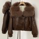 Giacca corta da donna in finta pelle scamosciata con collo in vera pelliccia di volpe, cappotto invernale caldo con fodera in piumino, capospalla casual in stile coreano