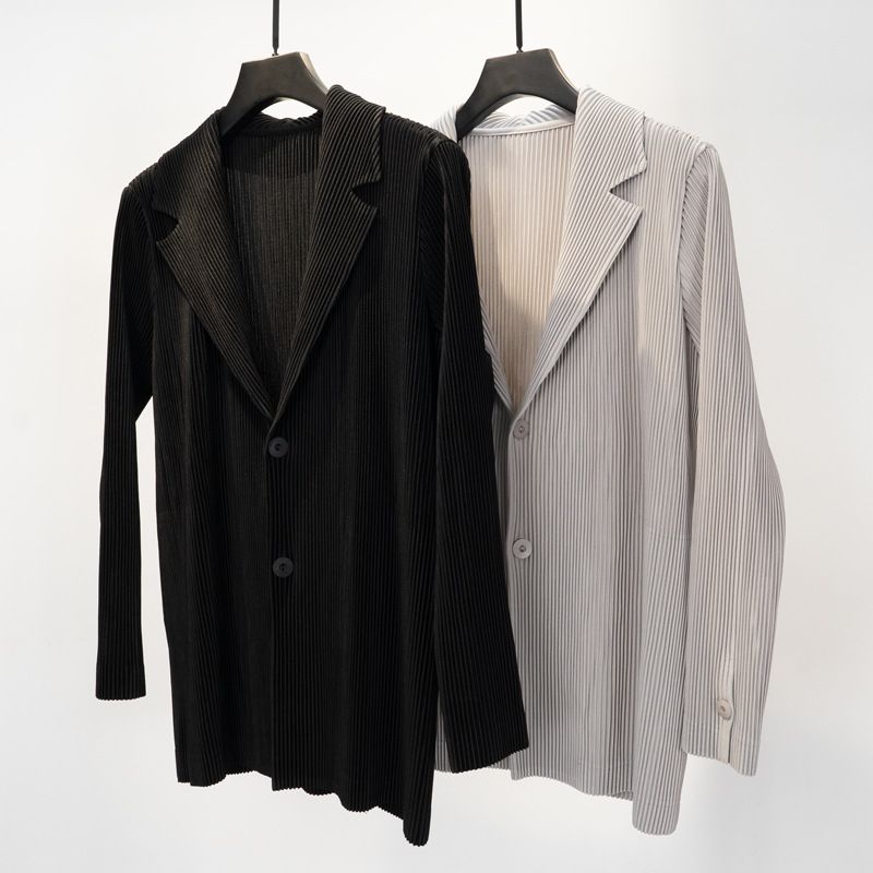 Giacca da abito a maniche lunghe Miyake 2025, primavera, colletto rovesciato, blazer casual ampio di alta qualità da uomo JD201